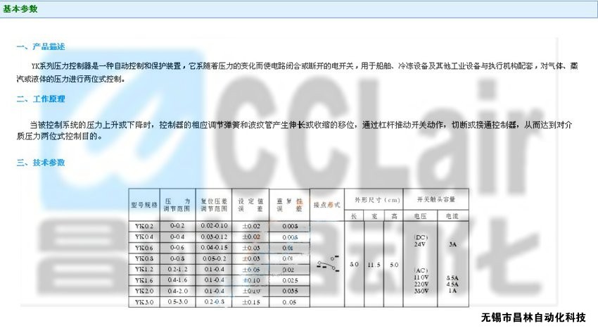 YK1.2,YK1.6,YK2.0,YK3.0压力控制器,