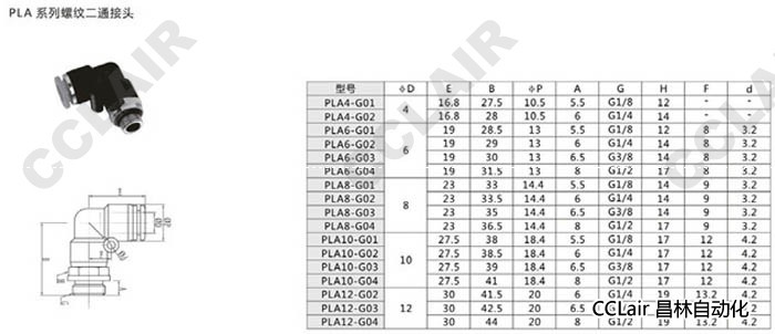 PLA4,PLA6,PLA8,PLA10,PLA12,螺纹二通接头
