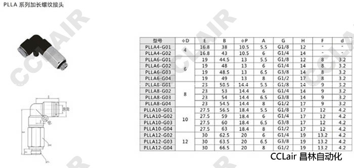 PLLA4,PLLA6,PLLA8,PLLA10,PLLA12,加长螺纹接头