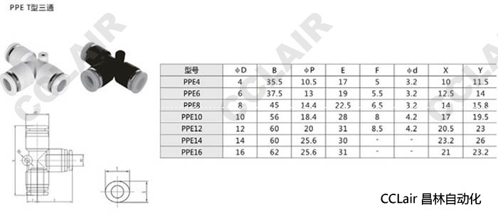 PPE4,PPE6,PPE8,PPE10,PPE12,PPE14,PPE16,T型三通接头