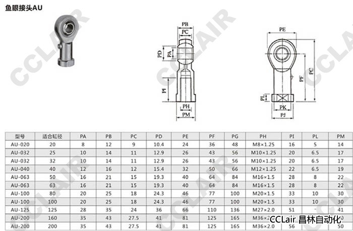 AU-020,AU-032,AU-040,AU-063,AU-100,AU-125,AU-200,鱼眼接头