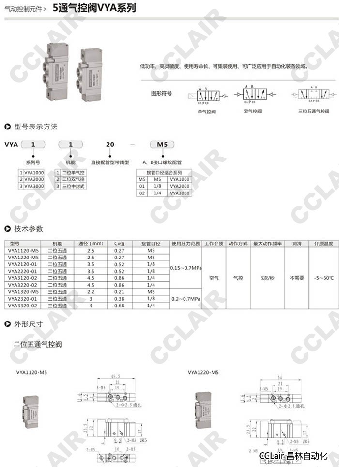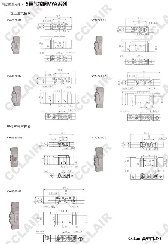 VYA1120-M5,VYA1220-M5,VYA1320-M5,VYA2120-M5,VYA2220-M5,VYA2320-M5,5通气控阀