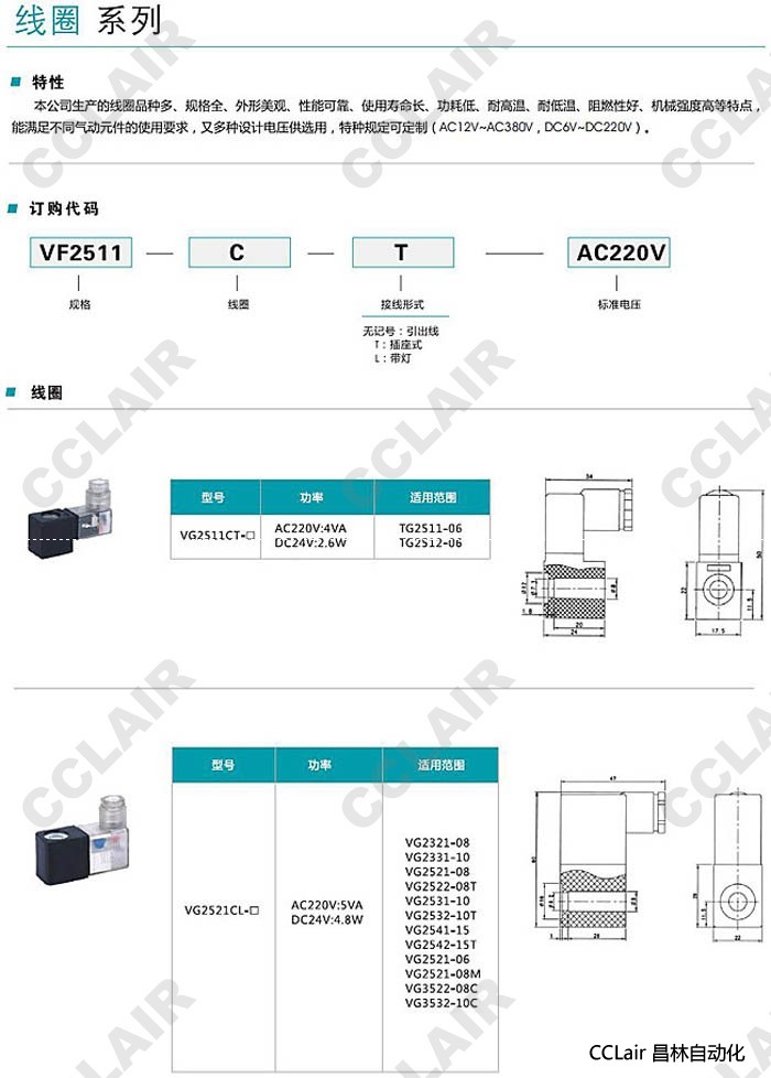 VF2511C-AC220V,VF2511CT-AC220V,VF2511CL-AC220V,线圈