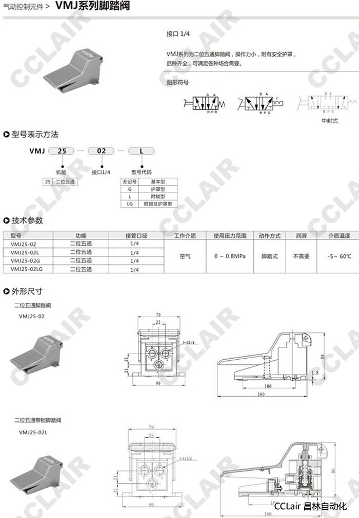 VMJ25-020,VMJ25-020G,VMJ25-020L,VMJ25-020LG,脚踏阀