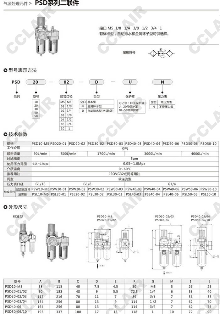 PSD20-MS,PSD20-01,PSD20-02,PSD20-03,PSD20-04,PSD20-06,PSD20-10,气动二联件