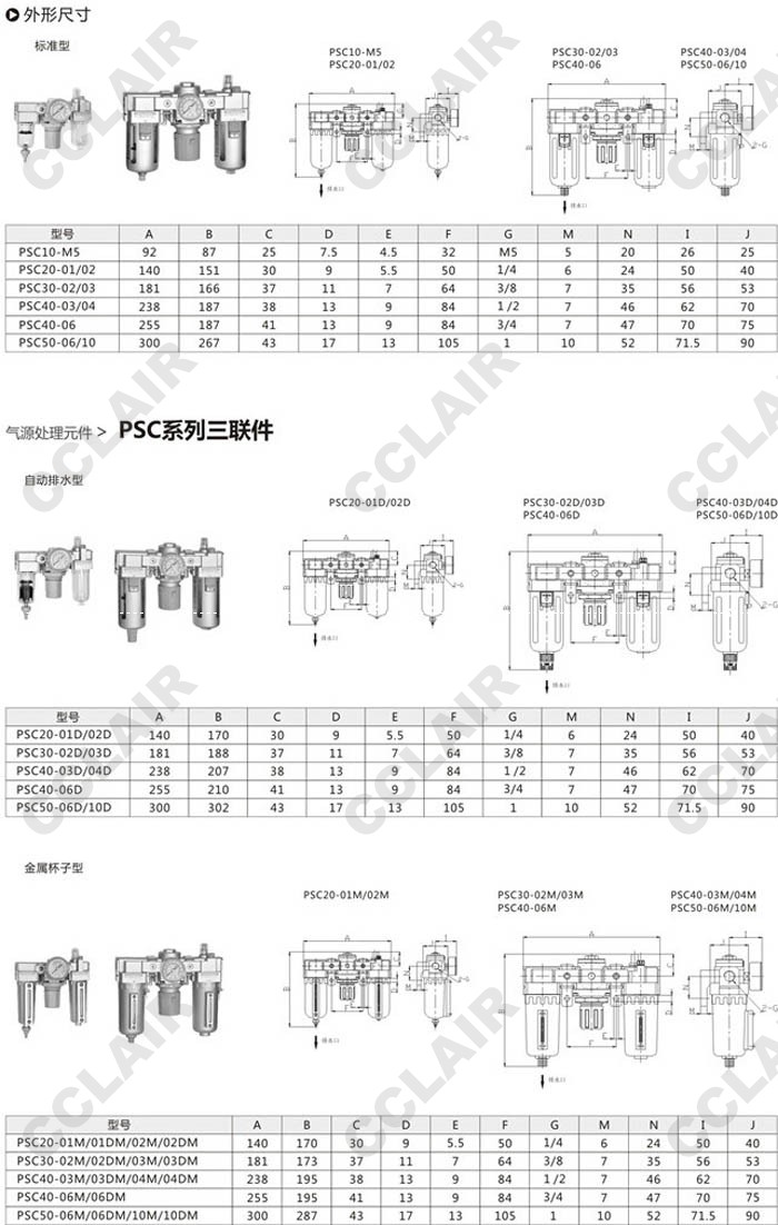 PSC40-MS,PSC40-01,PSC40-02,PSC40-03,PSC40-04,PSC40-06,PSC40-10,气动三联件