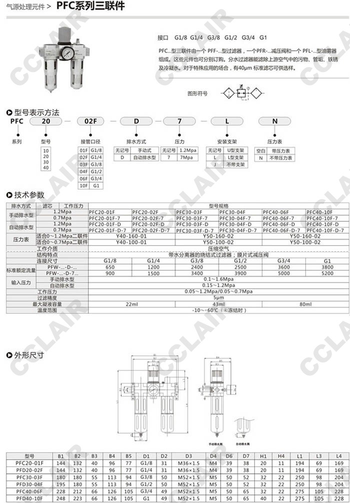 PFC10-01F,PFC10-02F,PFC10-03F,PFC10-04F,PFC10-06F,PFC10-10F,气动三联件