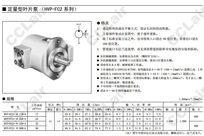 HVP-FC2,HVP-FC2-L17R-A,HVP-FC2-F17R-A,HVP-FC2-L50R-A,HVP-FC2-F50R-A,定量型叶片泵