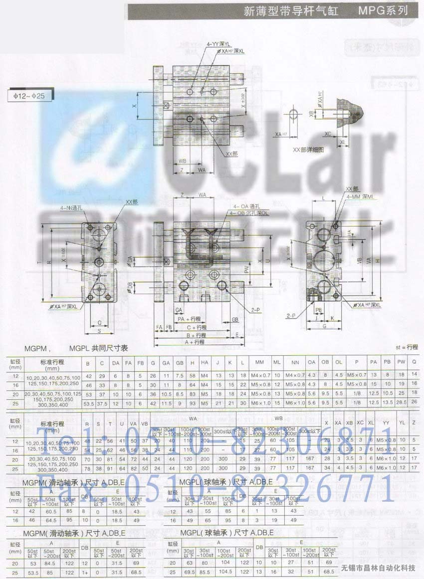 MGPL16N-75,MGPL16N-100,MGPL16N-125,MGPL16N-150,新薄型带导杆气缸