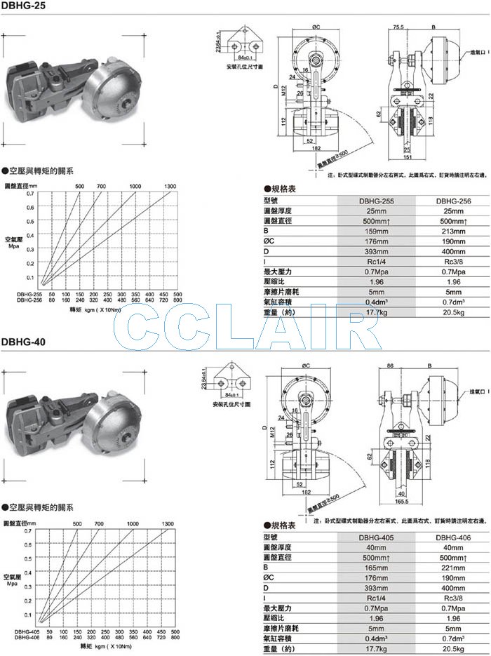 DBHG-255,DBHG-256,DBHG-405,DBHG-406,空压碟式制动器