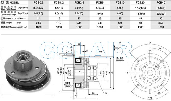 FCB0.6,FCB1.2,FCB2.5,FCB5,FCB10,FCB20,FCB40,电磁式离合器