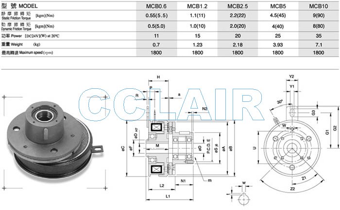 MCB0.6,MCB1.2,MCB2.5,MCB5,MCB10,MCB20,MCB40电磁式离合器