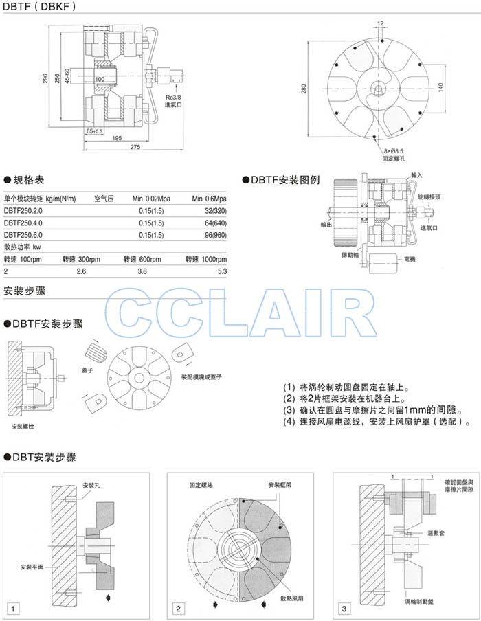 DBTF250.2.0,DBTF250.4.0,DBTF250.6.0,空压蝶式离合器