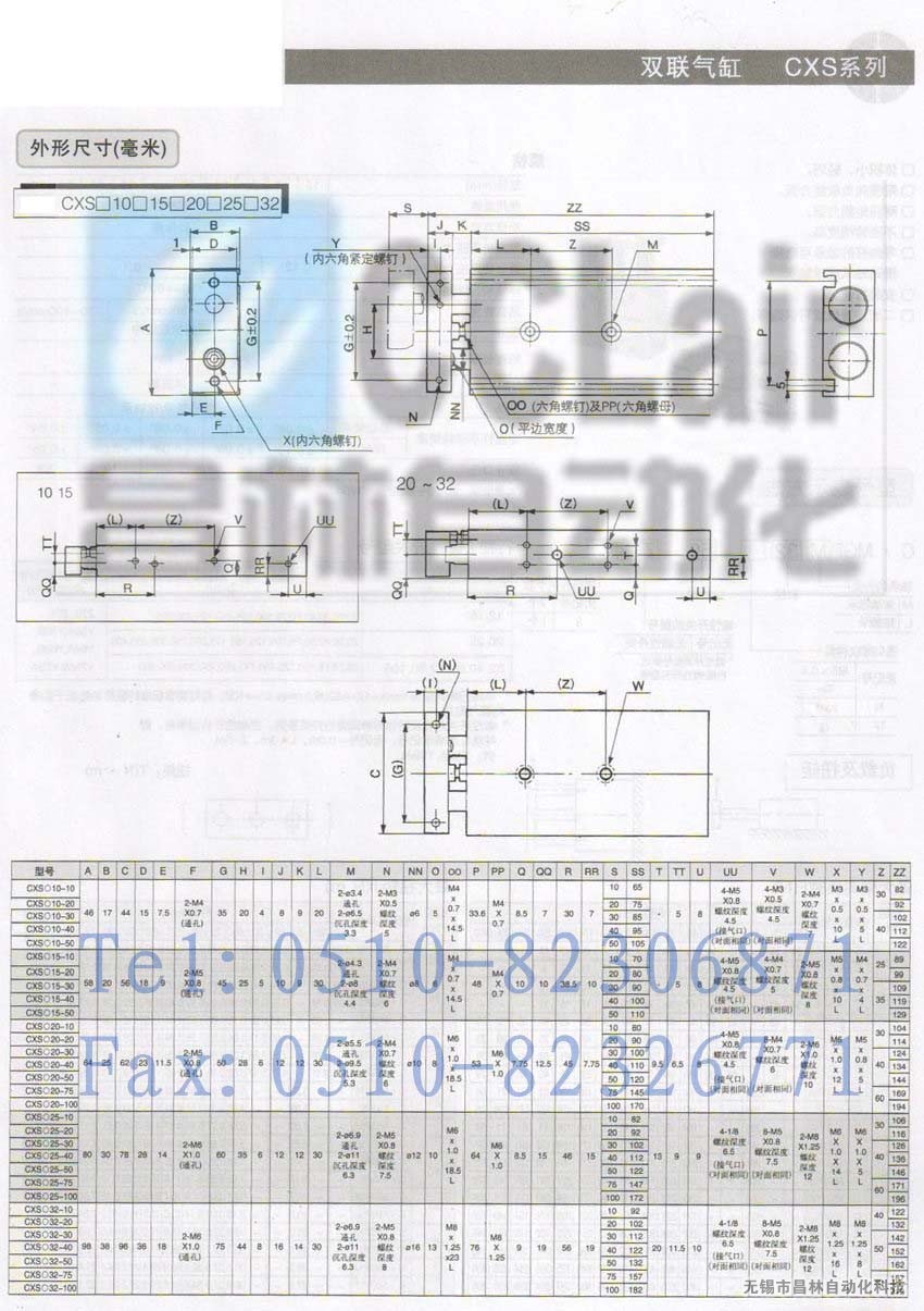 CXSL20-100-Z76,CXSL20-100-Y59A,CXSL20-100-Y59B,双联气缸,