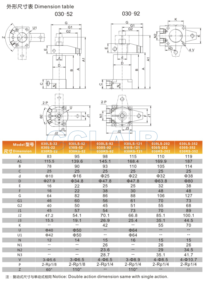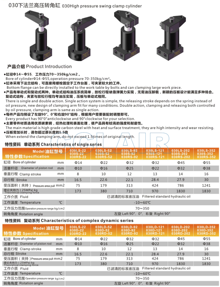 030LS-22,030LS-52,030S-92,030S-121,030RS-202,030RS-352,下法兰高压转角缸