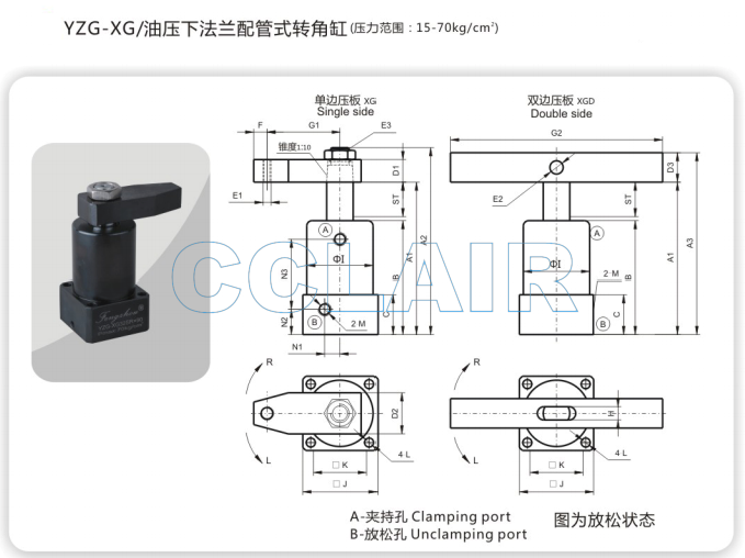 YZG-XG25,YZG-XG32,YZG-XG40,YZG-XG50,YZG-XG63,油压下法兰配管式转角缸