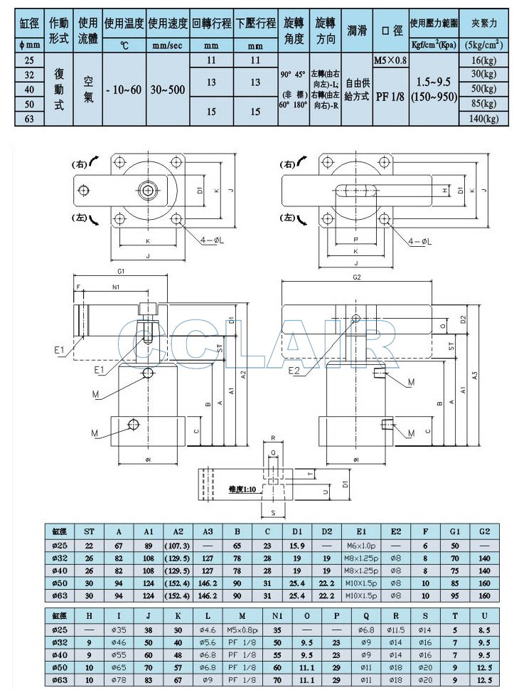 PSF-25,PSF-32S,PSF-40S,PSF-50S,PSF-63S,PSF-32D,PSF-40D,PSF-50D,转角气缸
