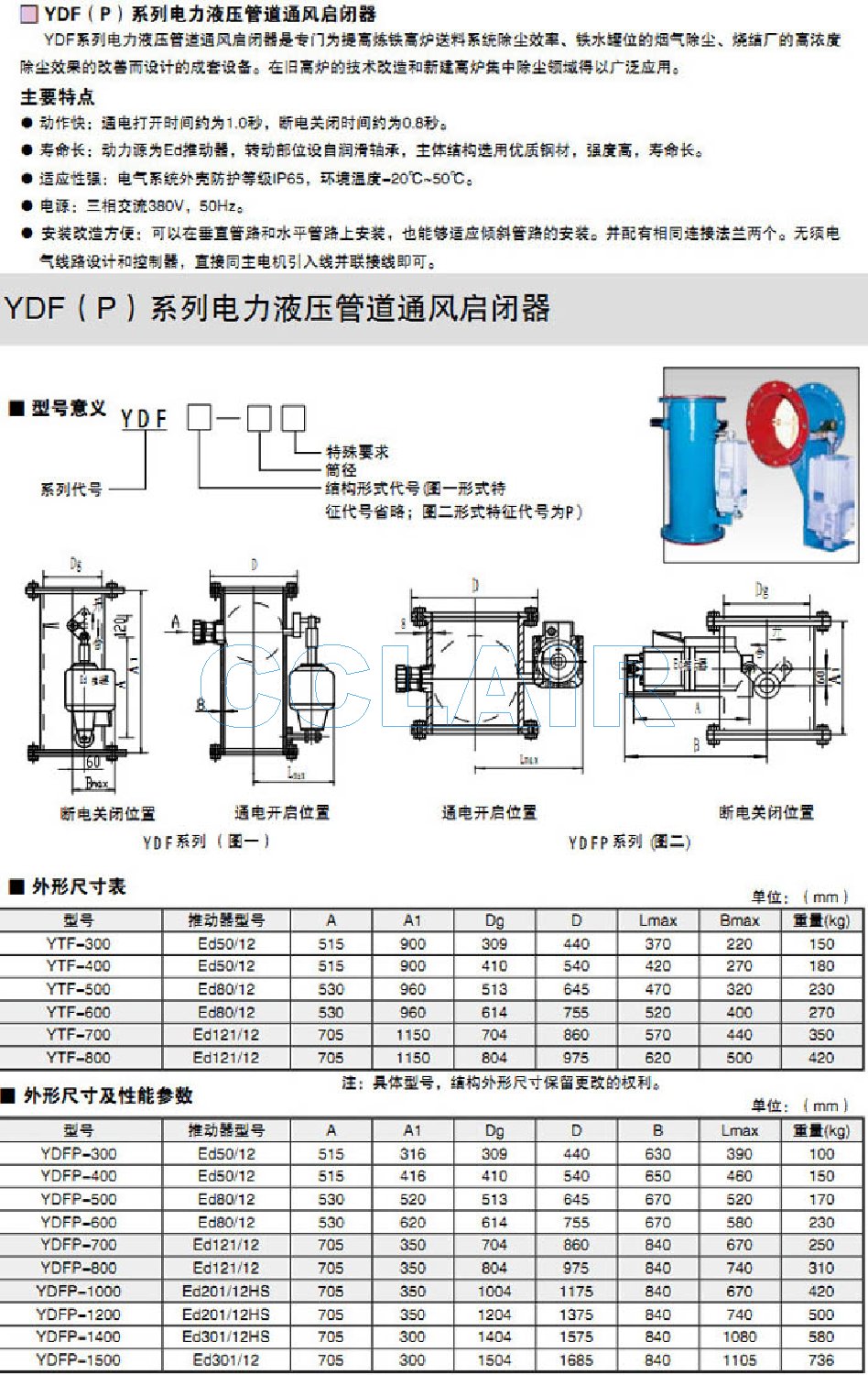 YDFP-800,YDFP-1000,YDFP-1200,YDFP-1400,YDFP-1500,电力液压管道通风启闭器
