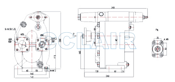 性能参数:理论排量:136ml/r 额定压力:80kgf/cm2 控制阀杆的钢丝作用力:15kg 油泵总质量:38kg