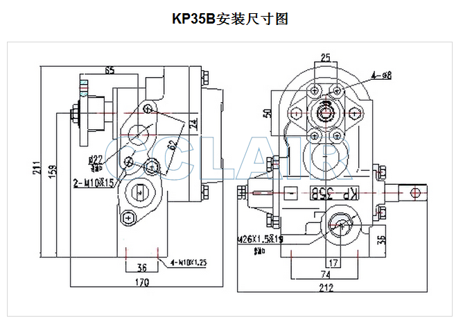 性能参数:理论排量:35ml/r 最高实验压力:175kgf/cm2 额定压力:45kgf/cm2 控制阀杆的钢丝作用力:10kg 油泵总质量:10kg