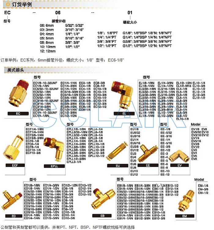 EE-1/8,EE-5/32,EE-3/16,EE-1/4,EE-5/16,EE-3/8,EE-6,EE-8,EE-10,EE-12,美式接头
