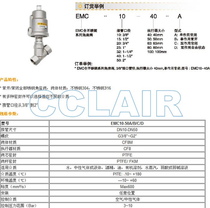 EMC10-40,EMC15-40,EMC20-50,EMC25-63,EMC32-80,EMC40-100,EMC50-100,角座阀