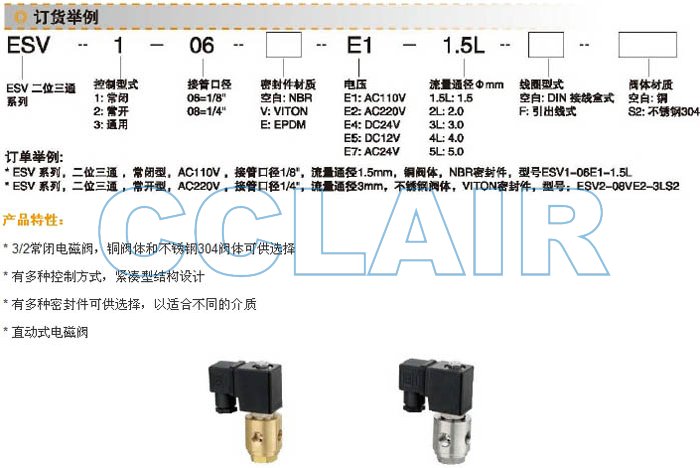ESV1-06,ESV2-06,ESV3-06,ESV1-08,ESV2-08,ESV3-08,二位三通直动式电磁阀