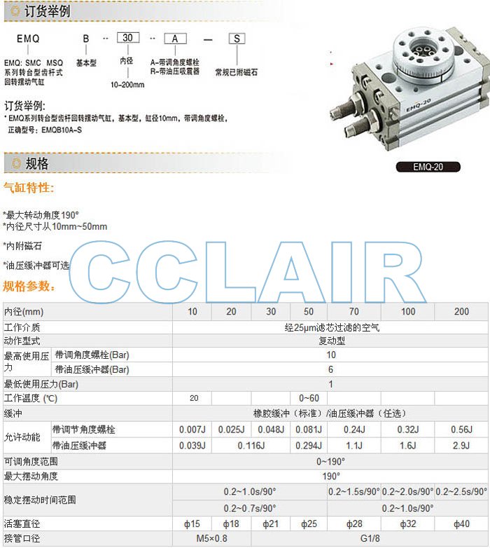 EMQB10A,EMQB20R,EMQB30A,EMQB50R,EMQB70A,EMQB100R,EMQB200A,摆动气缸