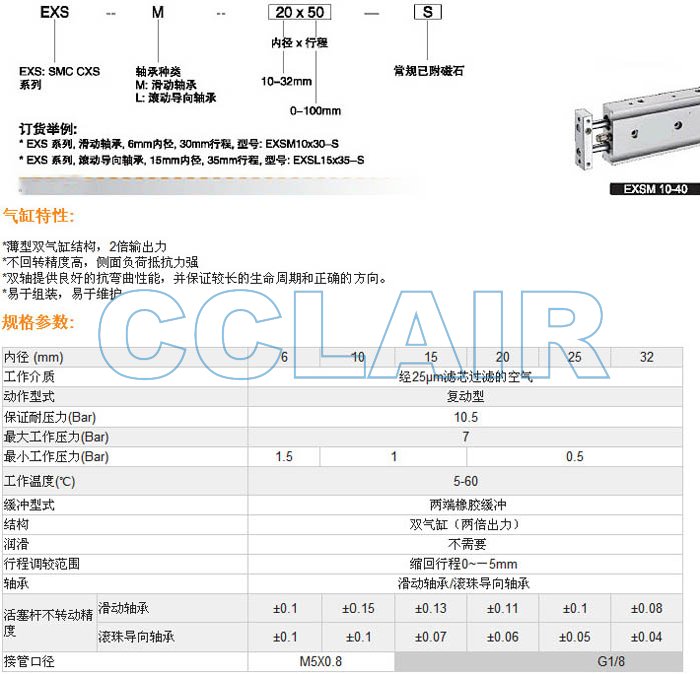 EXSM6X50,EXSL6X50,EXSM10X50,EXSM15X50,EXSL20X50,EXSL25X50,EXSM32X50,导杆气缸