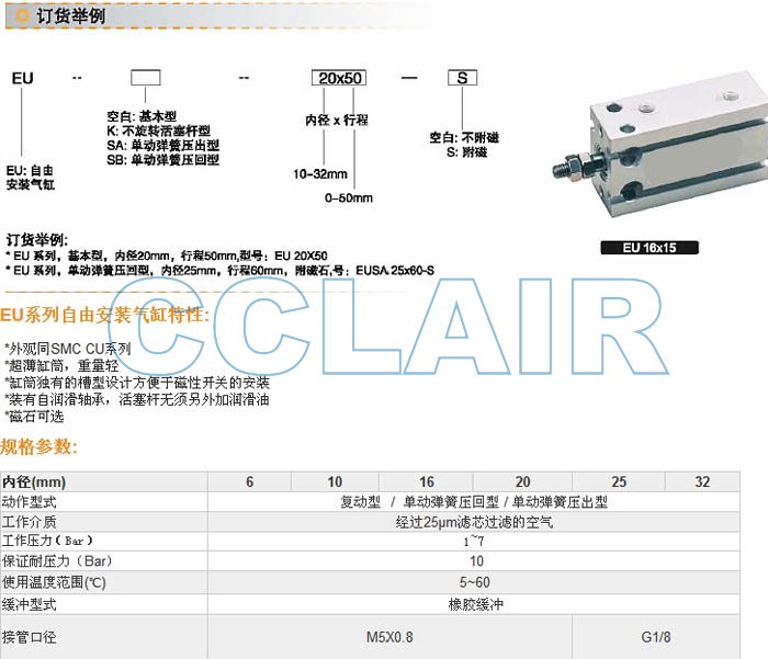 EU6X50,EUSB6X50,EUK10X50,EU16X50,EU20X50,EU25X50,EU32X50,薄型气缸