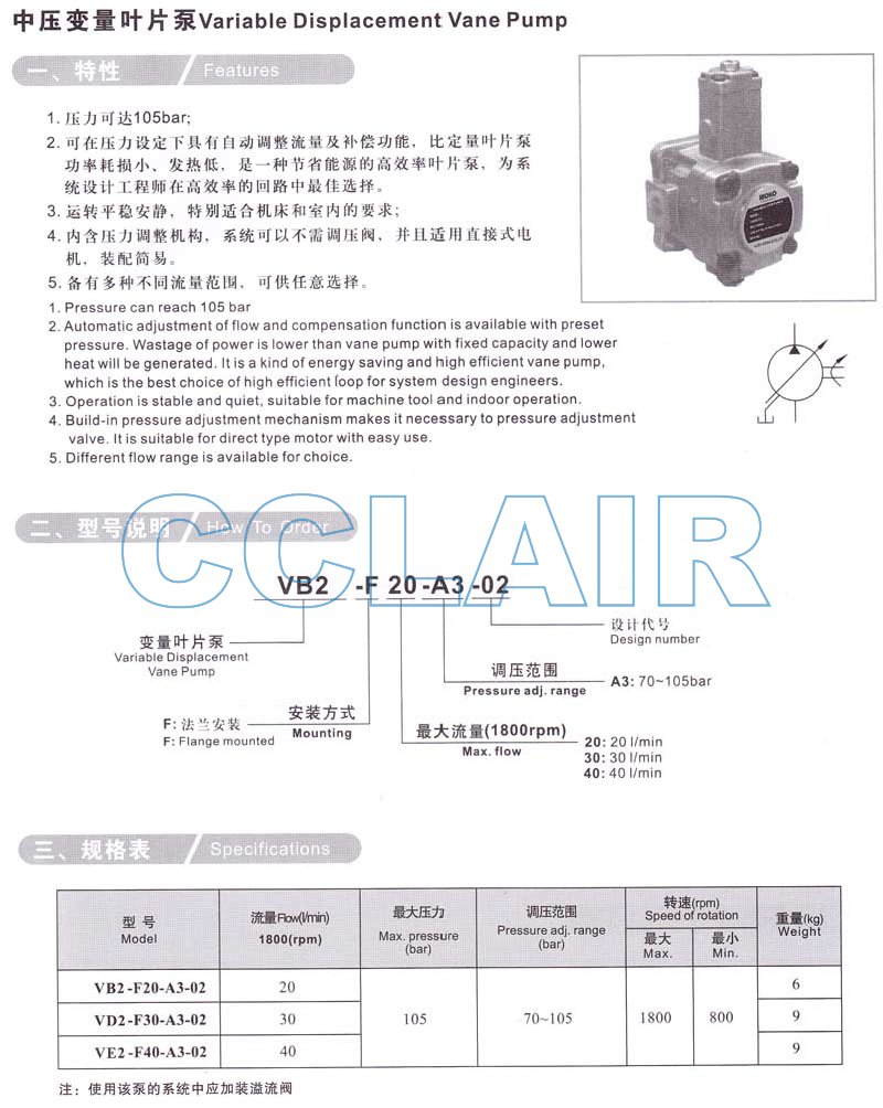 VB2-F20-A3-02,VD2-F30-A3-02,VE2-F40-A3-02,中压变量叶片泵