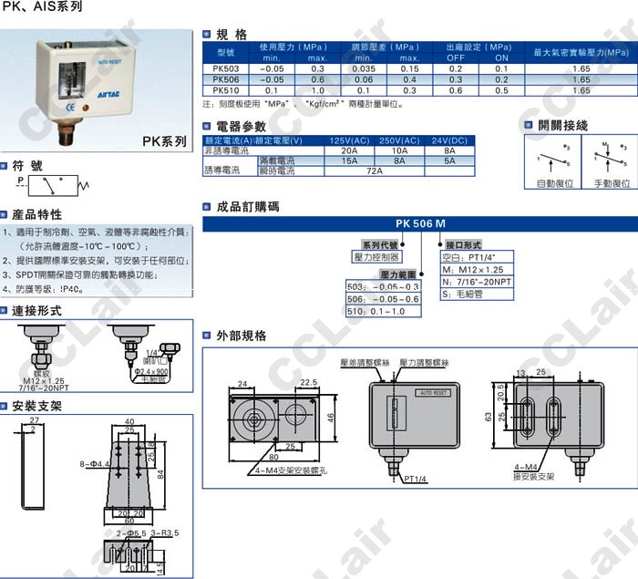 PK503-M,PK503-N,PK503-S,PK506-M,PK506-N,PK506-S,PK510-M,PK510-N,PK510-S,压力控制器