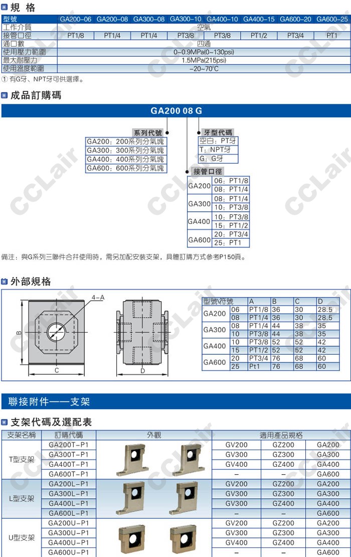 GA200-06-G,GA200-08,GA300-10-T,GA300-08,GA400-10,GA400-15,GA600-20,GA600-25,分气块
