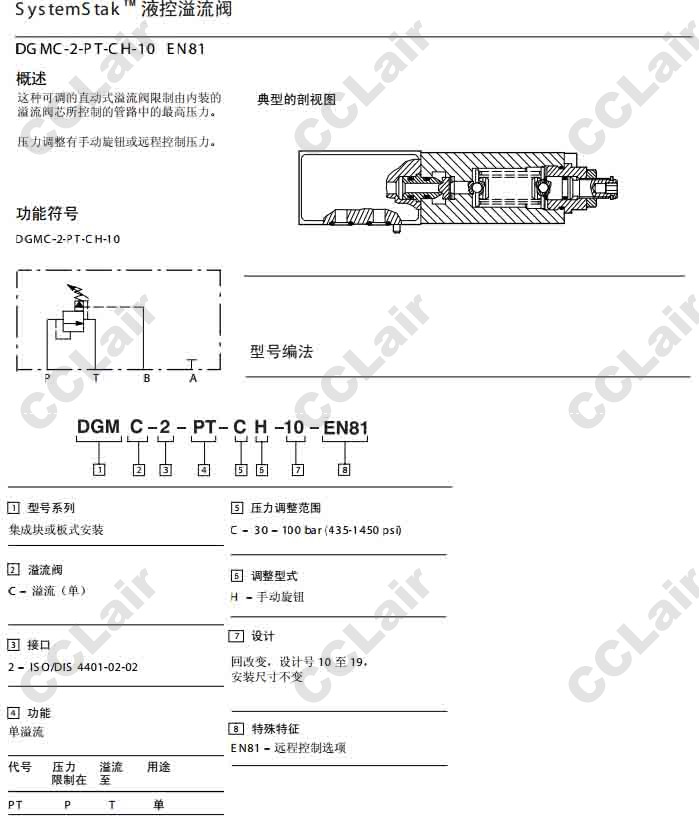 DGMC-2-PT-CH-10-EN81,液控溢流阀,威格士-Vickers