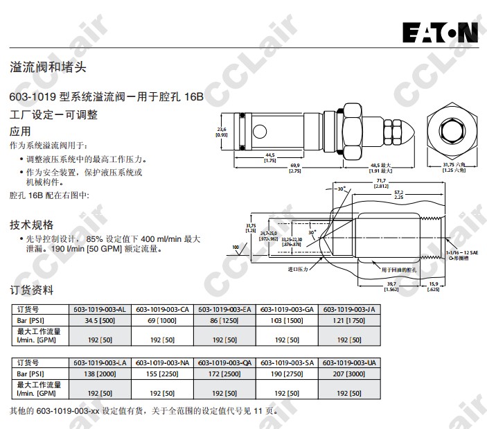 603-1019,603-1019-003-AL,603-1019-003-CA,603-1019-003-EA,威格士-Vickers,溢流阀