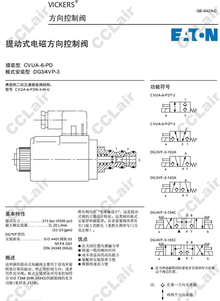 DG4VP-3-104C-VM-U-B-10,DG4VP-3-104C-VM-U-D-10,威格士-Vickers DG4VP-3-105C-VM-U-B-10,