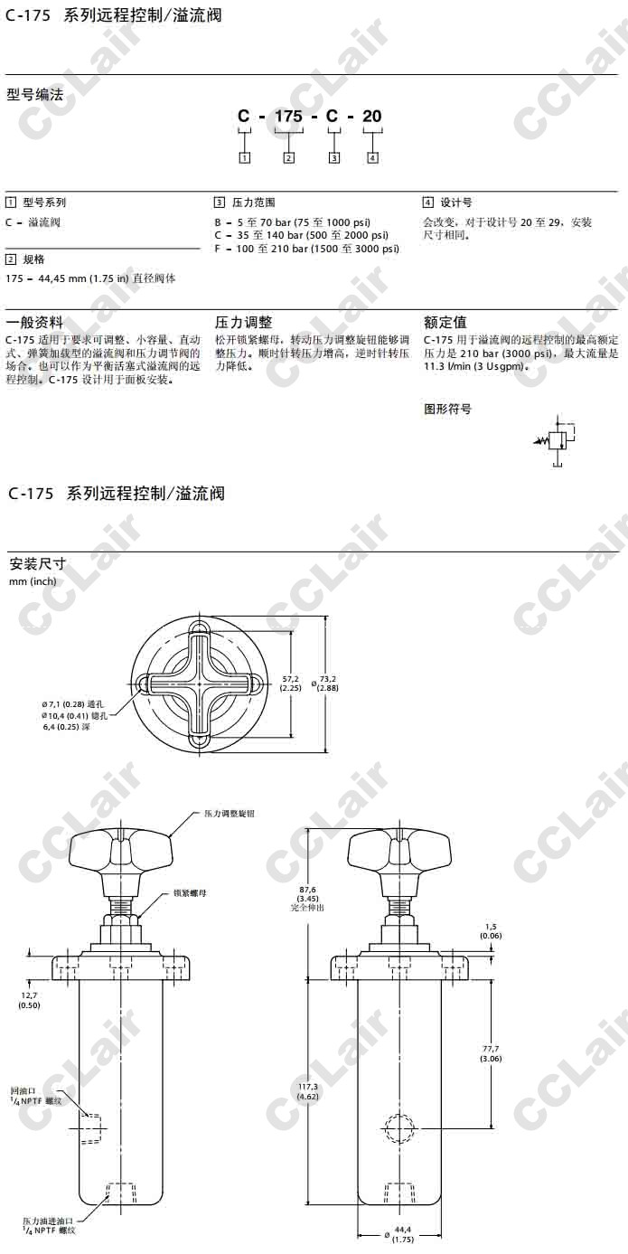 C-175-B-20,C-175-B-20,C-175-C-20,C-175-F-20,溢流阀,威格士-Vickers