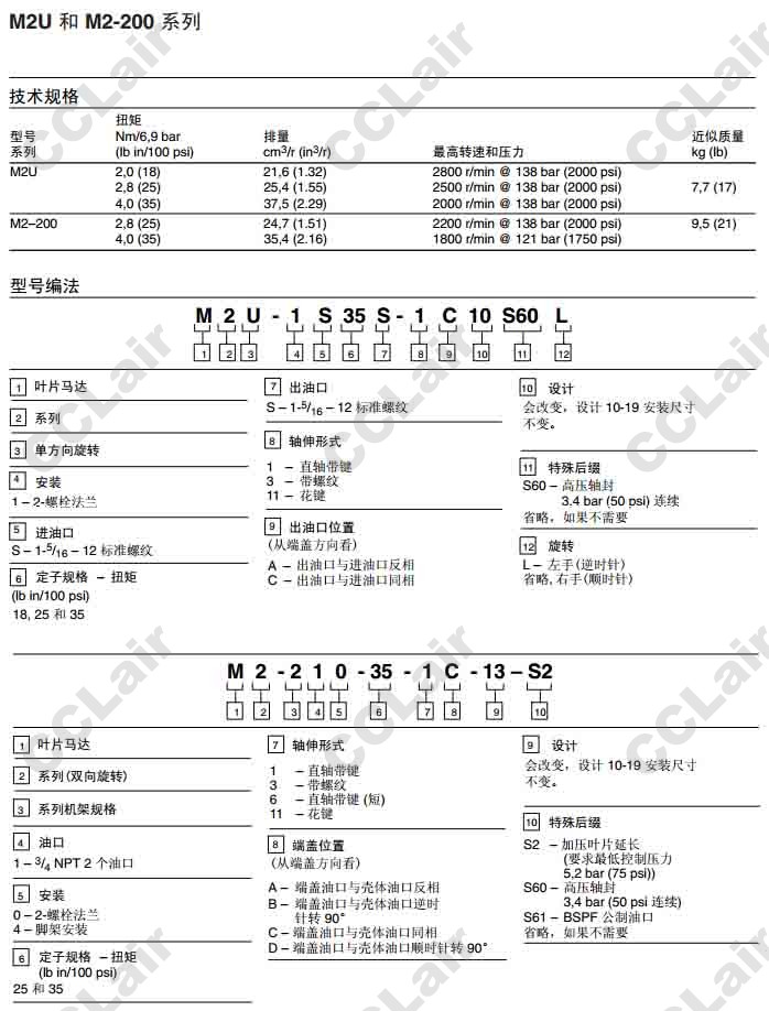 M2U–1S25S-1C10S60L,威格士-Vickers M2U–1S25S-3C10S60L,M2U–1S25S-11C10S60L,