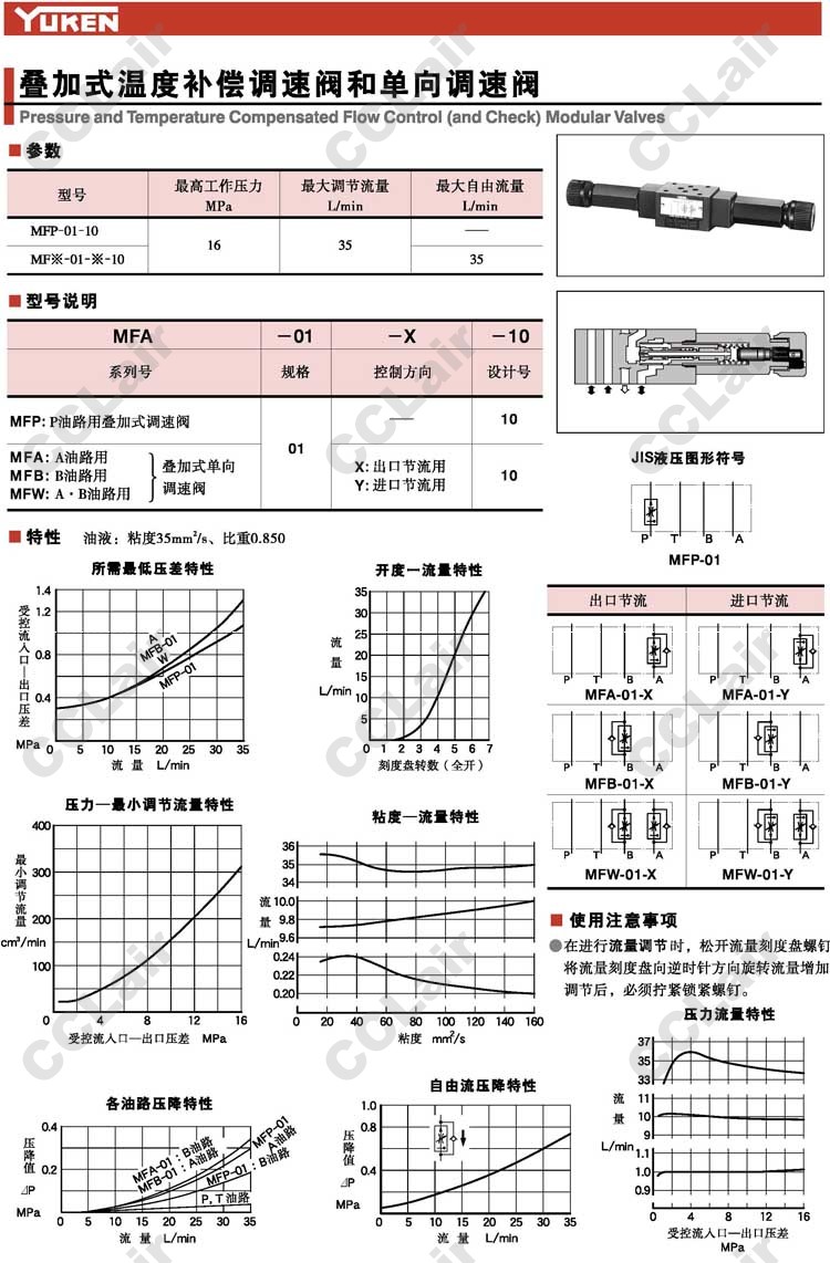 MFP-01-10,叠加式调速阀,YUCIYUKEN榆次油研