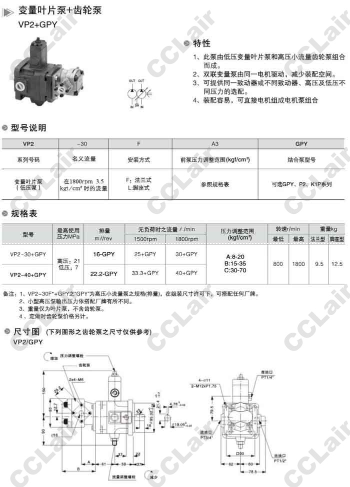 VP2-30+GPY,VP2-40+GPY,变量叶片泵+齿轮泵,无锡昌林