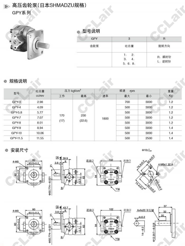 GPY-3-R,GPY-4-R,GPY-5.8-R,GPY-7-R,GPY-8-R,GPY-9-R,GPY-10-R,GPY-11.5-R,GPY-3-L,GPY-4-L,高压齿轮泵