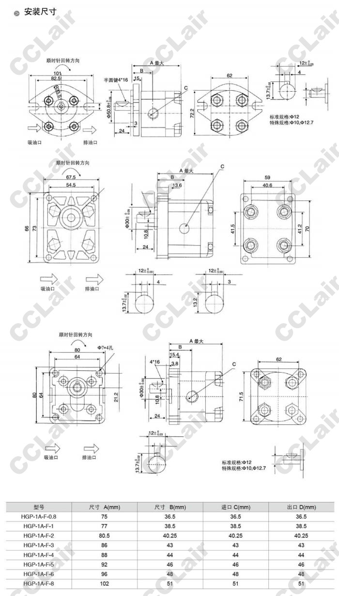 HGP-1A-F-1,HGP-1A-F-2,HGP-1A-F-3,HGP-1A-F-4,HGP-1A-F-5,HGP-1A-F-6,HGP-1A-F-8,高压齿轮泵