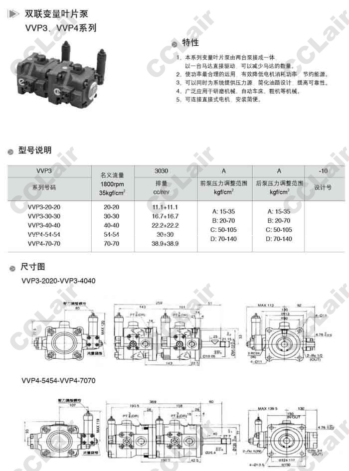 VVP3-20-20,VVP3-30-30,VVP3-40-40,VVP4-54-54,VVP4-70-70,双联变量叶片泵