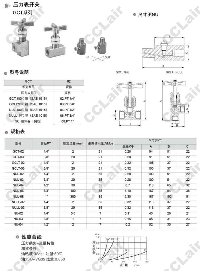 GCT-02,GCT-03,GCLT-02,GCLT-03,NUL-02,NUL-03,NUL-04,压力表开关