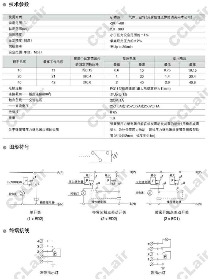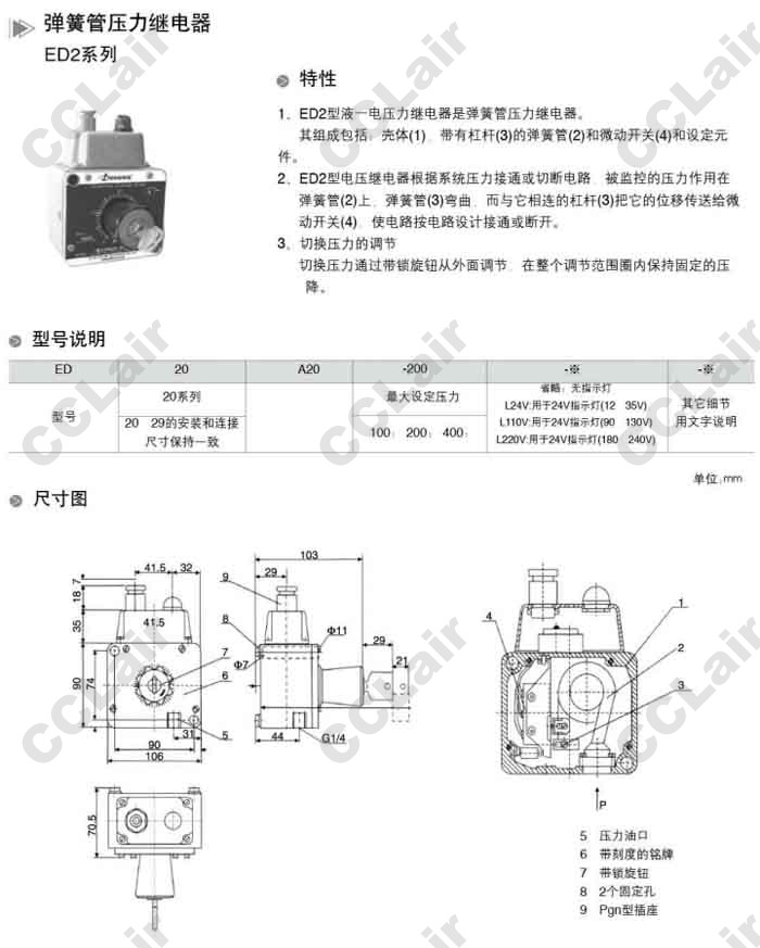ED20A20-100,ED20A20-200,ED20A20-400,ED20A20-100-L220V,ED20A20-100-L110V,弹簧管压力继电器