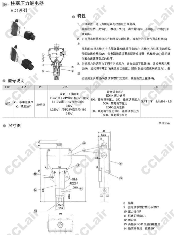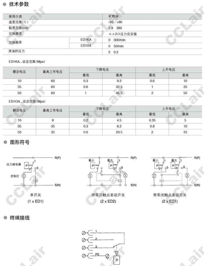 ED1-OA20,ED1-KA20,ED1-OA20-315-L24V-G,ED1-KA20-315-L24V-G,ED1-OA20-315-L220V-G,柱塞压力继电器