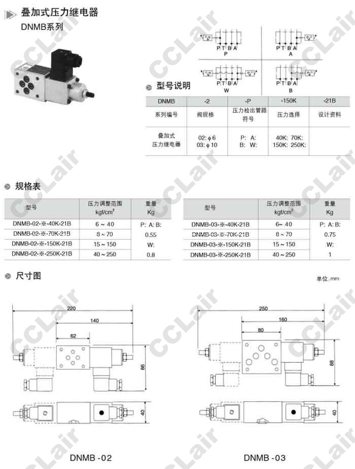 DNMB-02-P-40K-21B,DNMB-02-B-70K-21B,DNMB-02-P-150K-21B,DNMB-02-P-250K-21B,叠加式压力继电器