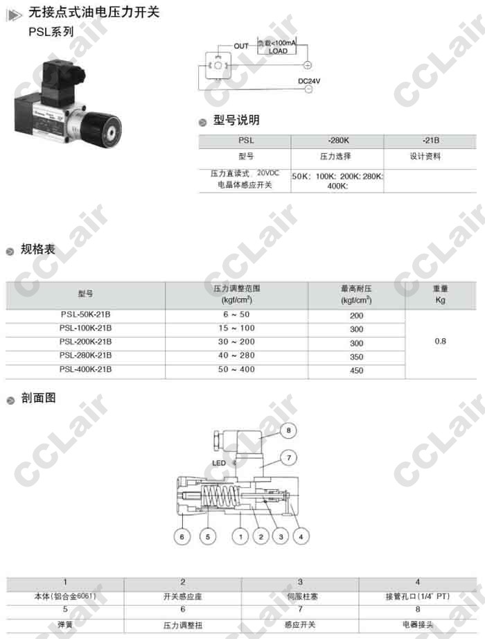 PSL-50K-21B,PSL-100K-21B,PSL-200K-21B,PSL-280K-21B,PSL-400K-21B,油电压力开关,无锡昌林