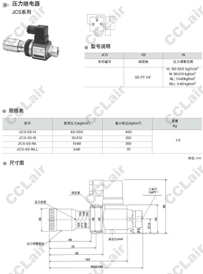 JCS-02-H,JCS-02-N,JCS-02-NL,JCS-02-NLL,压力继电器,无锡昌林