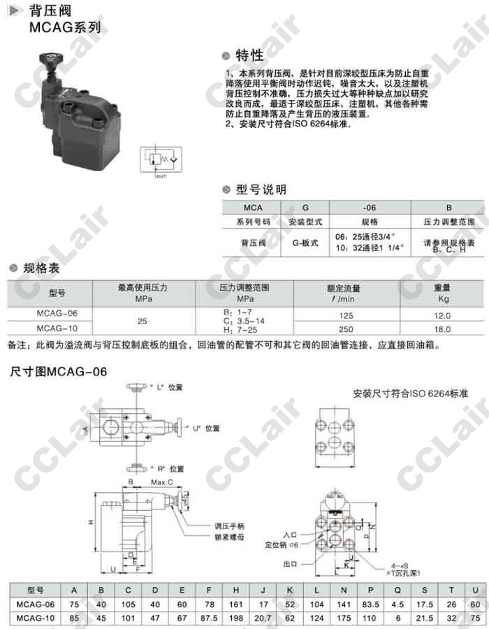 MCAG-06B,MCAG-06C,MCAG-06H,MCAG-10B,MCAG-10C,MCAG-10H,背压阀